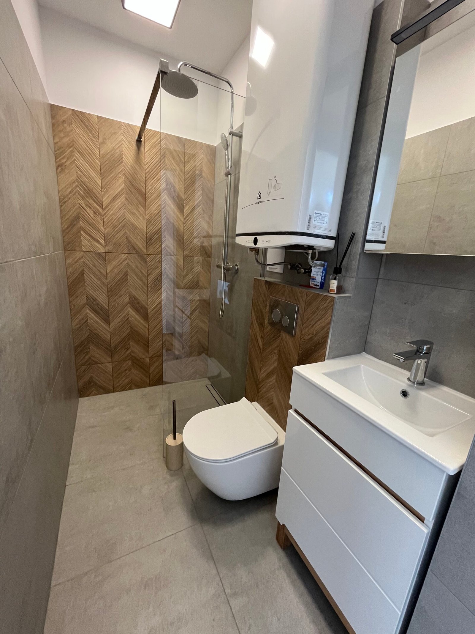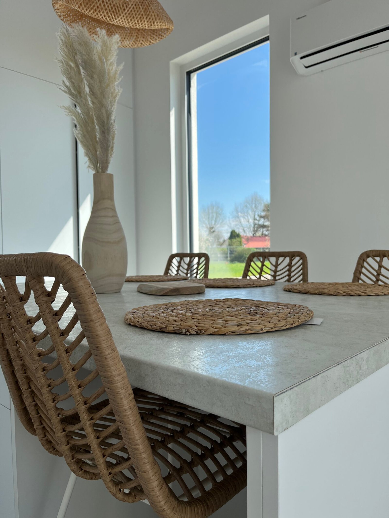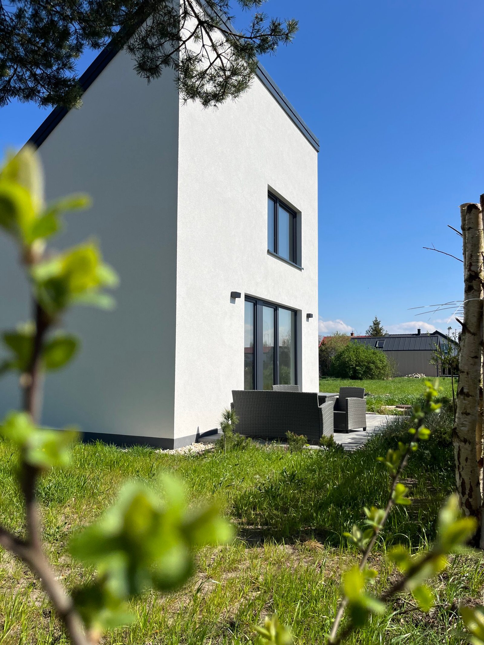Całoroczny murowany domek w otoczeniu zieleni nadmorskiej roślinności. Obszerne przeszklenia zapewniają dużą dawkę światła dziennego i piękny widok na otaczający go ogród. Domek posiada oddzielną sypialnię z łóżkami dla dwóch osób, łoże małżeńskie na przestronnej antresoli oraz sofę z funkcją spania w salonie, co stanowi przestrzeń dla noclegu maksymalnie 6 osób. W pełni wyposażona kuchnia z dużą wyspą umożliwia komfortowe przygotowanie posiłków i celebrowanie rodzinnego czasu. Domek jak najbardziej sprawdzi się przy dłuższych nadmorskich pobytach, wyposażony jest w pralkę, zmywarkę oraz klimatyzację. Jego dużym atutem jest rozbudowana część tarasowa, gdzie można w spokoju wypić kawę i zjeść pyszny posiłek. Dodatkowo otacza go duża przestrzeń zielonej działki, na której swobodnie mogą wyszaleć się dzieciaczki lub Twój pupil.